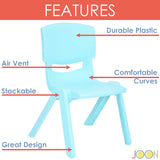 JOON Stackable Plastic Kids Learning Chairs, 20.5x12.75X11 Inches, 2-Pack