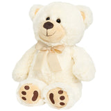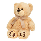 This adorable JOON teddy bear with ribbon is about 13 inches tall. The teddy bear huggable, love-able stuffed animal. Complete with a ribbon on the neck, this mini best friend will look great in any bedroom or playroom. The JOON teddy bear features: Extra-soft plush polyester fabric, plastic eyes, fully embroidered paw printed feet, and a ribbon on the bear's neck. This is the smallest JOON Bear in the family. When he needs a bath, surface wash him with a damp cloth. Height: about 13" from foot to ears. Height Sitting Down: Approximately 9 inches. Size: 13" x 7.5" x 4.5".